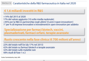 sempre più in partnership con le strutture pubbliche. Ad esempio, i farmaci biotech, i vaccini, i plasmaderivati, le terapie avanzate e i farmaci orfani. E nella fase clinica, fondamentale per l’accesso alle terapie, nella quale ogni anno in Italia le imprese investono oltre 700 milioni di euro, spesso nelle strutture del SSN, offrendo anche possibilità di crescita professionale a medici e ricercatori, rendendo disponibili per i pazienti terapie innovative, sostenendo tutti i costi connessi, come l’ospedalizzazione e gli esami diagnostici. Si calcola che per 1 euro investito in studi clinici il beneficio economico complessivo per il SSN è 2,8 euro (fonte: ALTEMS).